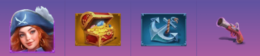 Cada um dos símbolos reforça o tema marítimo e de aventuras piratas: