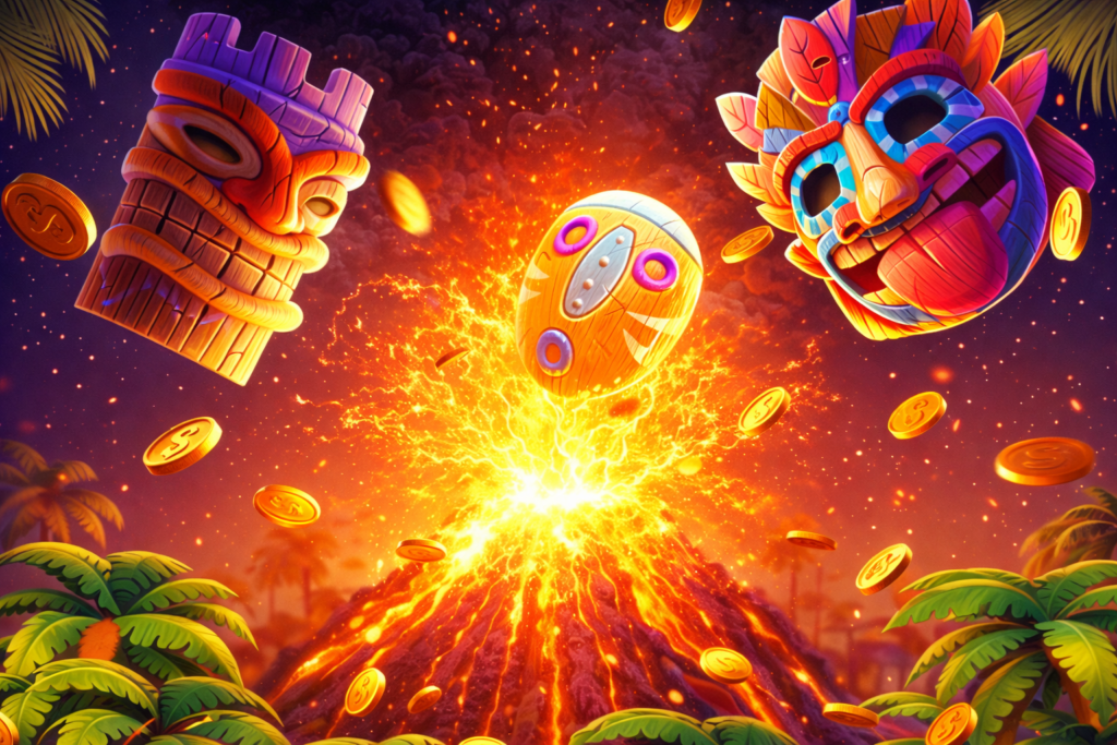 A emoção atinge o pico quando o vulcão entra em erupção! O bônus de Giros Grátis é a chave para o ganho máximo.